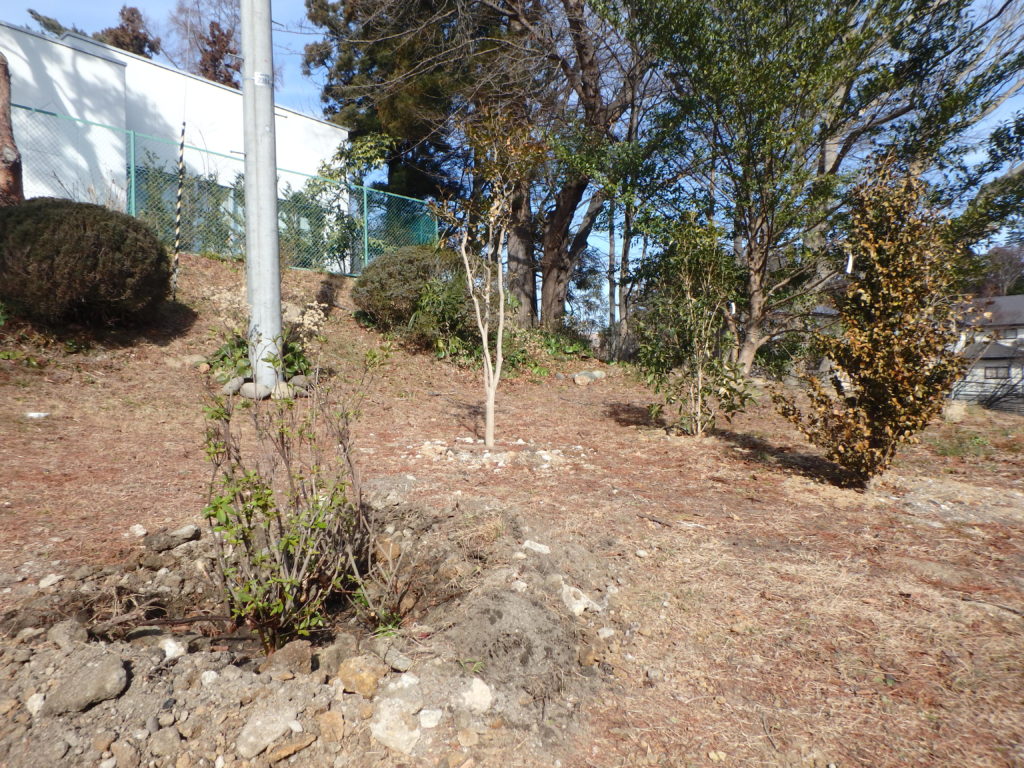 午後は園長が土作り。腐葉土や落葉灰を土の混ぜてツツジを五株移植しました。