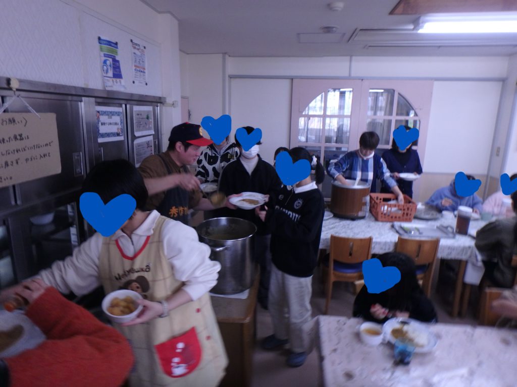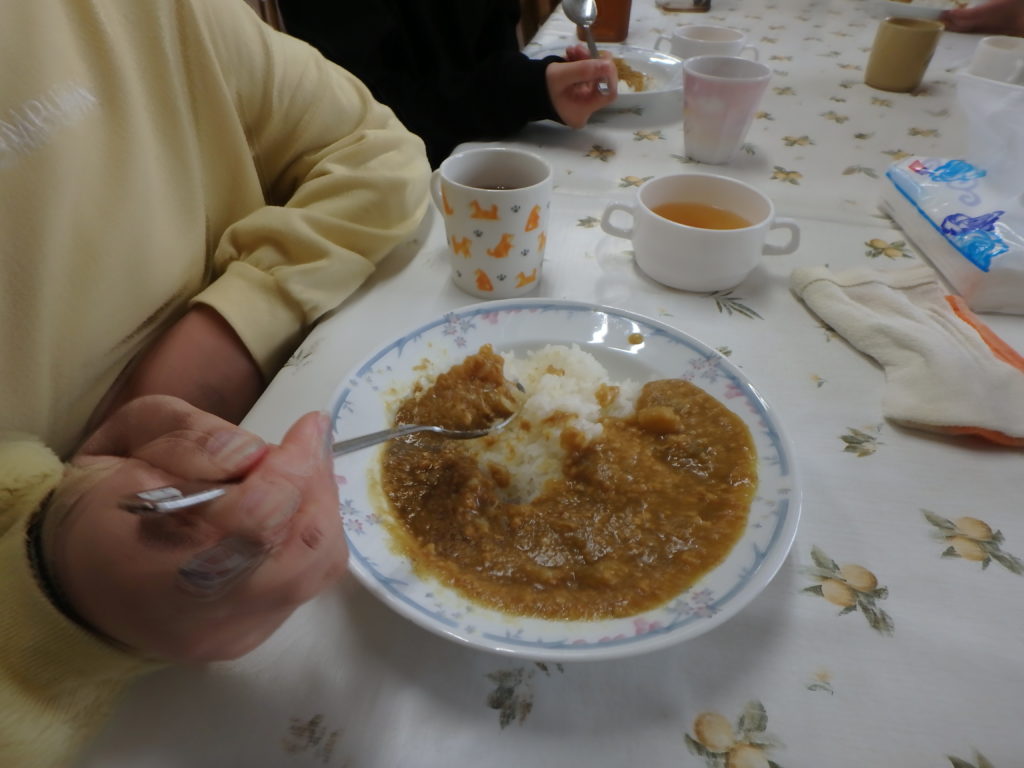 子どもたち一人ひとりのご飯に秀作さんがカレーをよそってくれて「いただきま~す!」