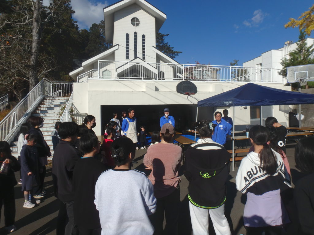ライオンズクラブの皆様は、「顔より大きい肉なんて見たことないよね?」「子ども達には(お腹こわさないように)もうちょっと火を通しておいた方がいいな。」「もっと○○したら‥」などと、子どもが楽しんでくれる姿を想像して焼いてくださっています。そのお気持ちの一つ一つがなんと有り難いことでしょうか。